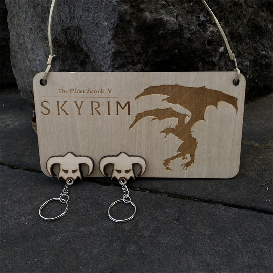 Skyrim Dragonborn Alduin Wooden Keychain Plate